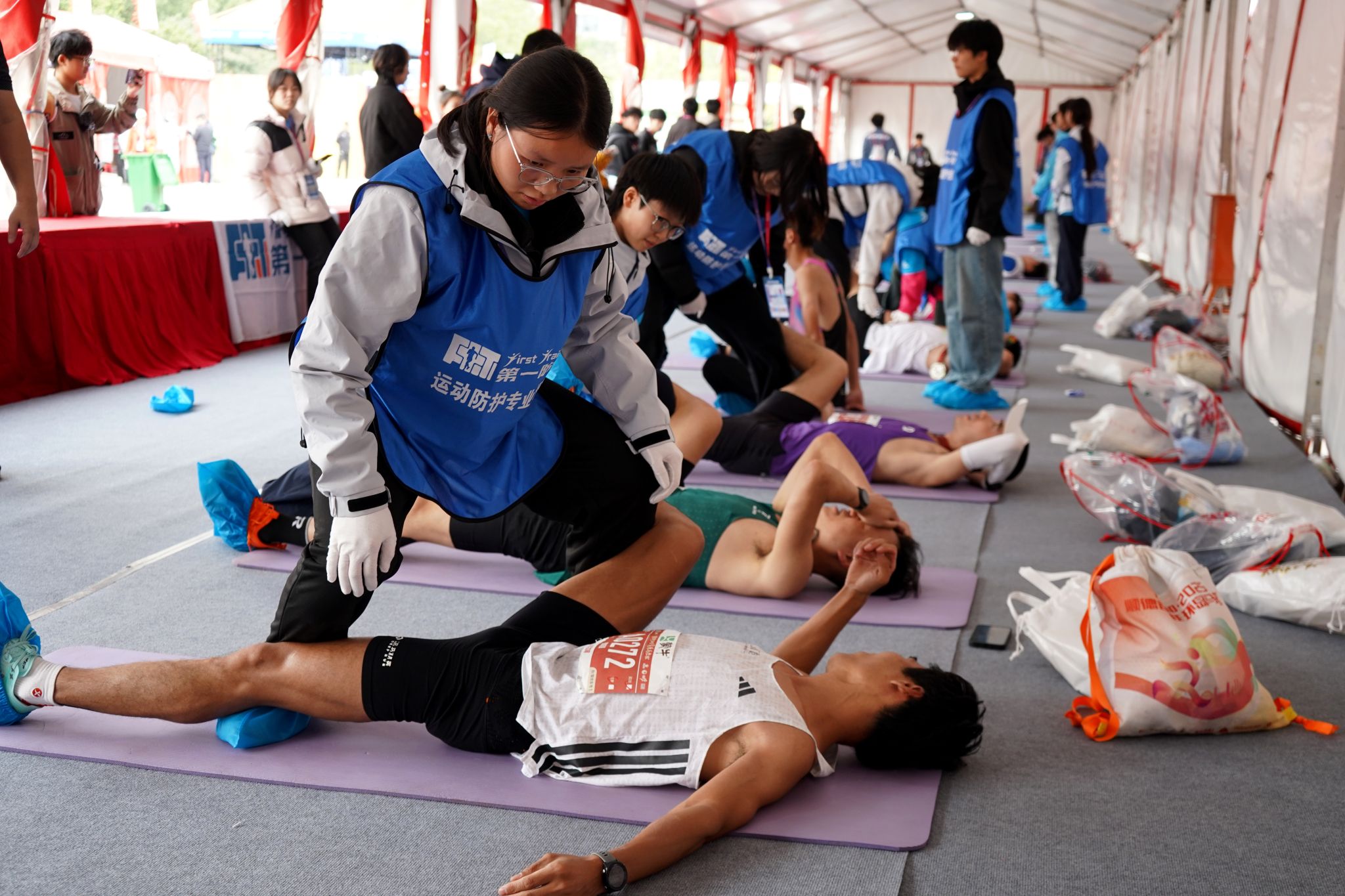 赛道内外,湖文志愿者服务赛事身影随处可见。