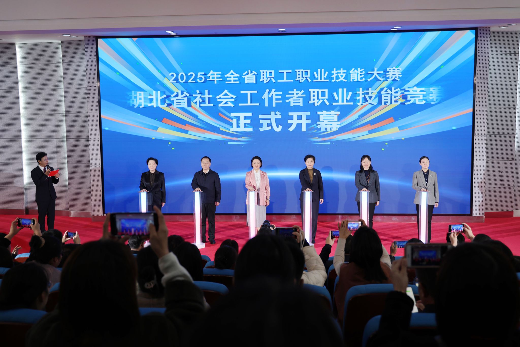 10月29日上午,开幕式在学校图书馆三楼报告厅举行,由大学生合唱团演唱的《社工之歌》拉开序幕,竞赛评委专家组组长、中国社会工作学会副会长、深圳大学教授徐道稳,湖北省委社会工作部副部长陈剑,省委社会工作部五处处长张骅,襄阳市人大常委会副主任、市总工会主席吉虹,襄阳市委社会工作部部长魏玮,襄阳市总工会党组书记、常务副主席李华,学校党委副书记、副校长张樊出席开幕式。